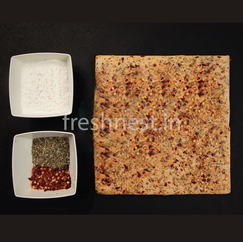 Experience an exquisite fusion of flavors with our Chilli Flakes & Oregano Pizza Base. Immerse yourself in the perfect blend of fiery chili flakes and aromatic oregano, meticulously crafted into a crispy canvas when baked. Each bite offers a harmonious dance of spice and herb, transforming your pizza moments into a sensational journey of taste. Redefine your pizza indulgence with this tantalizing fusion.