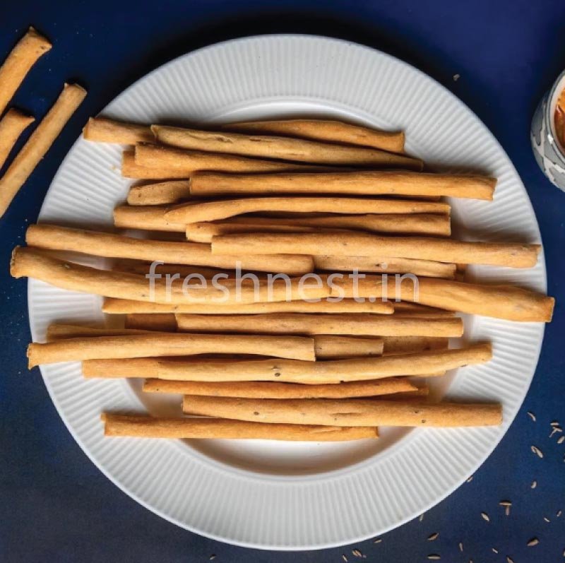 Enjoy the savory twist of our Zeera Bread Sticks. Infused with aromatic cumin seeds, these bread sticks offer a delightful crunch and a rich, earthy flavor. They make a unique and flavorful snack to your favorite dishes.